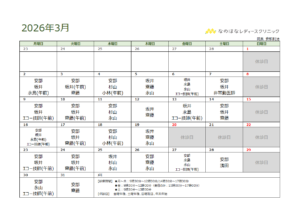 3月の担当医・休診日 2026.02.19 誠に勝手ながら3月21日(土)は休診とさせていただきます。ご迷惑をおかけしますが、何卒よろしくお願いいたします。 Tweet Share RSS Pin it この記事のタイトルとURLをコピーする 2月の担当医・休診日 前の記事 メディア掲載のお知らせ 次の記事