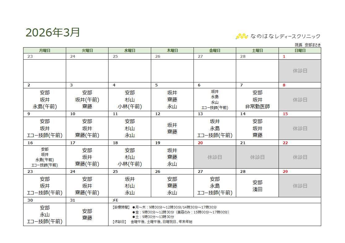 3月の担当医・休診日 2026.02.19 誠に勝手ながら3月21日(土)は休診とさせていただきます。ご迷惑をおかけしますが、何卒よろしくお願いいたします。 Tweet Share RSS Pin it この記事のタイトルとURLをコピーする 2月の担当医・休診日 前の記事 メディア掲載のお知らせ 次の記事